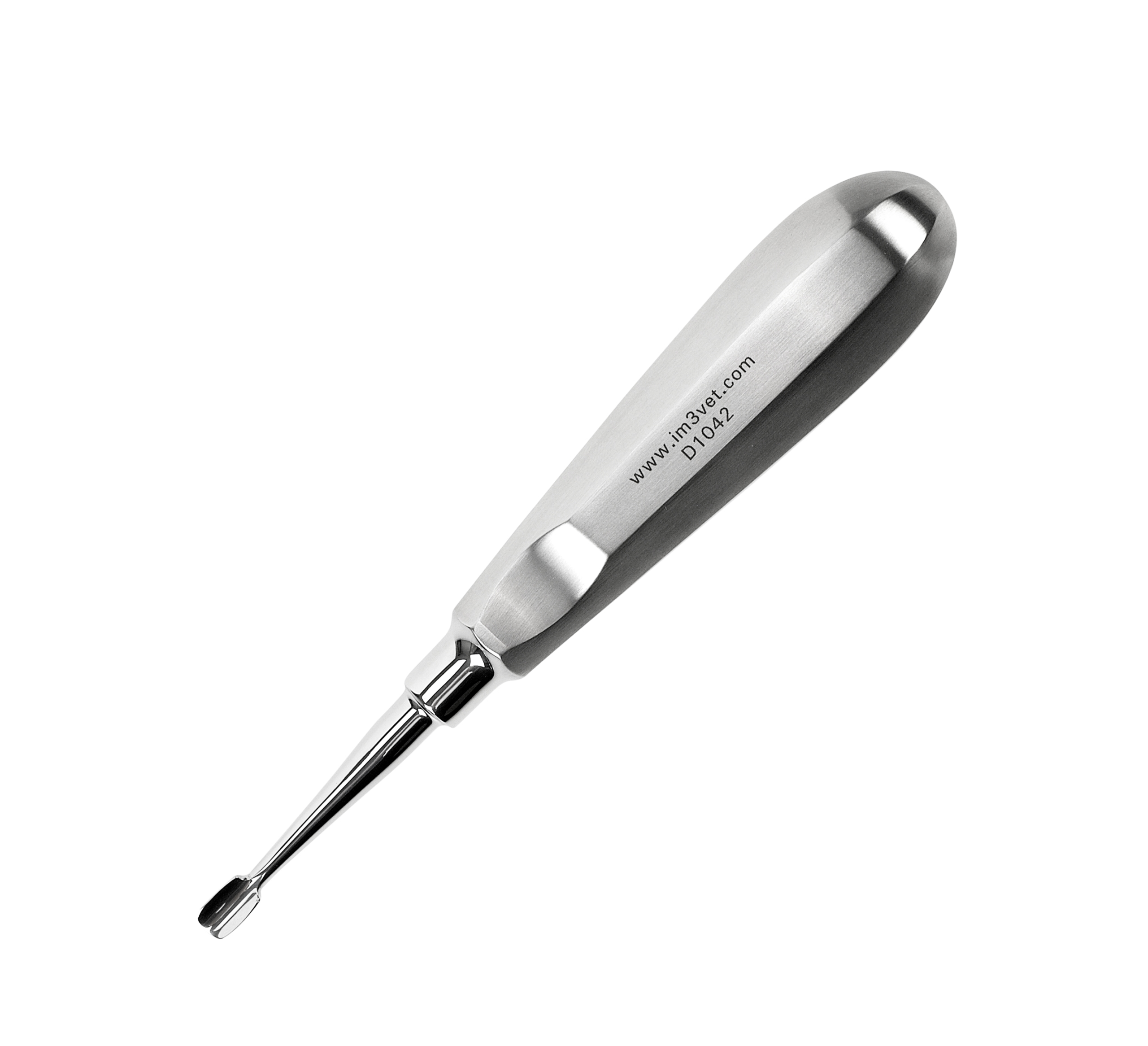 iM3 winged elevators combine the winged shape and thin sharp cutting edge to aid in extractions. The stubby handle sits comfortably in the users palm while the fore finger sits on the shaft of the instrument. Available in 6 sizes and used to elevate and extract the tooth. The winged shape of the elevator tip matches the curve of the tooth and the extra leverage aids in extraction.