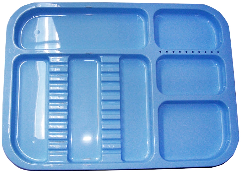 Large blue plastic autoclavable instrument Tray with dividers and section for holding dental burs – 340mm x 245mm (9 ¾” x 13 ½”)