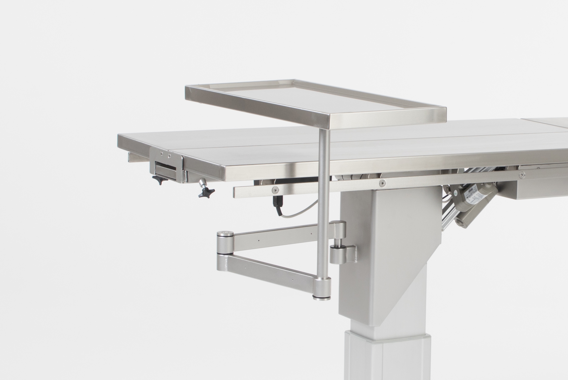 Voeg aan uw iM3 Tara een roestvrijstalen instrumentenbak toe op een dubbele scharnierende verlengarm.