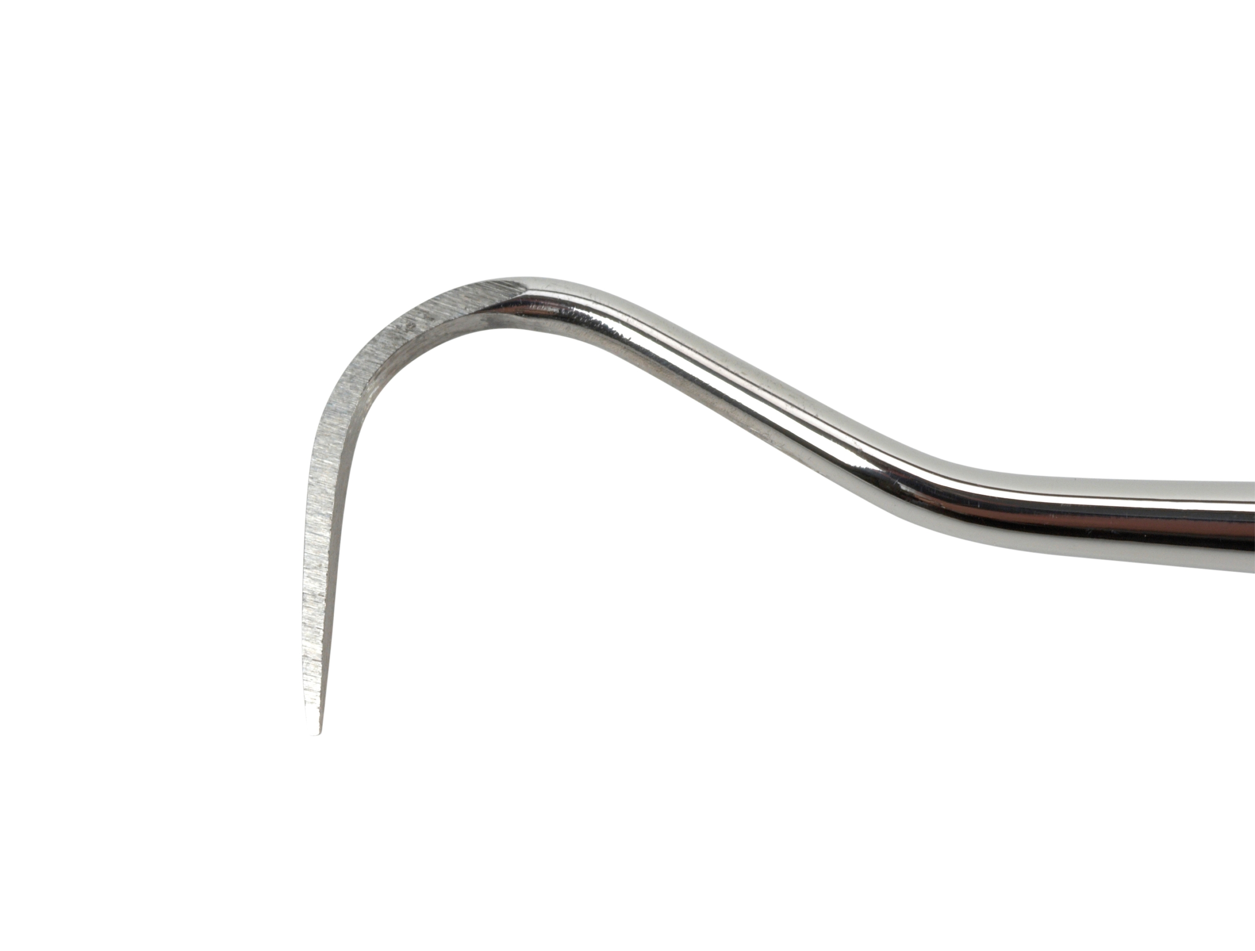 This scaler is used to remove plaque and calculus from the tooth surface. The sickle scaler tip can be used to remove calculus from the developmental grooves and blood grooves in canine teeth.